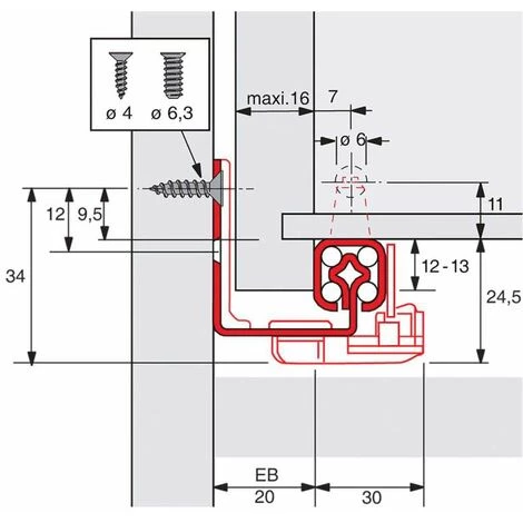 Convient aux tiroirs avec une épaisseur du côté de tiroir jusqu’à 16 mm