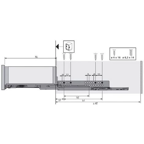 - Rappel en fin de course sur amortisseur pour une fermeture du tiroir en douceur et sans bruit