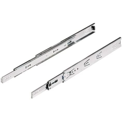 Cette coulisse Ă bille Hettich est utilisĂ©e pour les tiroirs de meubles et peut supporter des charges plus lourdes quâune coulisse Ă galets.