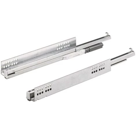 Cette coulisse à bille Hettich est utilisée pour les tiroirs de meubles et peut supporter des charges plus lourdes qu’une coulisse à galets.