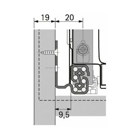 - Pour caisson épaisseur 19 mm, largeur encastrement 9,5 mm