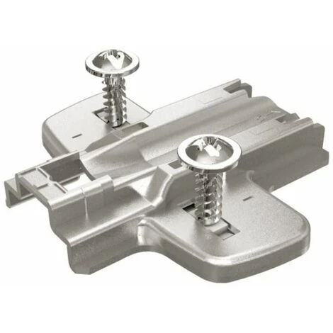 Embases cruciformes type 8099 pour charnières Sensys et Intermat – avec vis sans excentriquePlaques de montage pour charnières invisibles Sensys – Embases cruciformes – sans excentrique pour montant central – vis Brevetées « Hettich Direkt ».