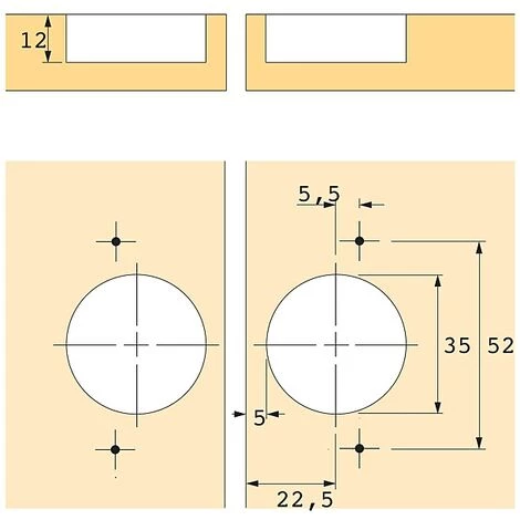 Charnière pour porte pliante à visser axe 52 ouverture 180°, Point de rotation décalé et réglable de 0 à 6 mm, réf. 46787• En zamak nickelé • Angle d’ouverture 180° • Schémas de perçage identiques pour les 2 côtés • Les 2 parties peuvent être montées séparément