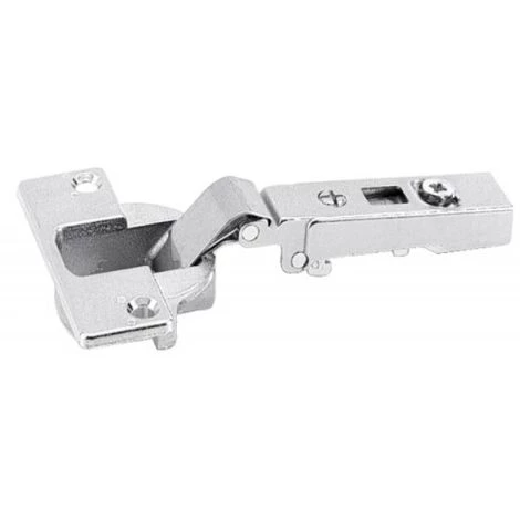 Le montage du bras articulé sur la plaque de montage est réalisé par simple clipsage. Réglage de recouvrement et de la profondeur par excentrique. Le réglage de la hauteur se fait par la plaque de montage. Acier nickelé.