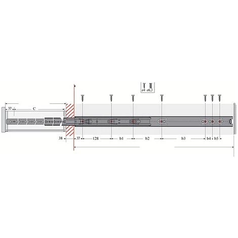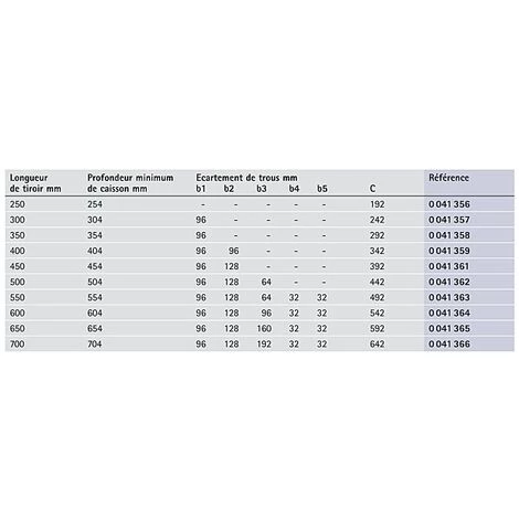 Paire coulisses à billes tiroir bois ka4932 Sortie totale charge 60 kg longueur 450 mm, 450 mm, réf. 041361