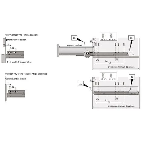 coulisses actro you silent system 40 kg – longueur 270 mm