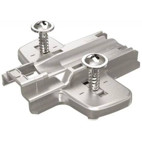 Embases cruciformes type 8099 pour charnières Sensys et Intermat – avec vis sans excentriquePlaques de montage pour charnières invisibles Sensys – Embases cruciformes – sans excentrique – vis à expansion prémontées Avec vis spéciales prémontées et manchons en plastique pour perçages Ø 5 x 12 mm.
