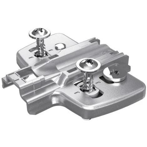 Embases cruciformes type 8099 pour charnières Sensys et Intermat- vis prémontées et réglage excentrique Plaques de montage pour charnières invisibles Sensys – Embases cruciformes – à excentrique – pour ferrure d’angle – vis prémontées Avec vis spéciales prémontées et manchons en plastique.