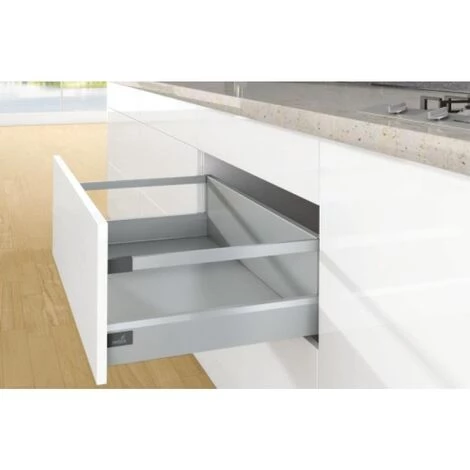 kit complet tiroir arcitech à casseroles avec tringles profil h94mm paroi arrière h218mm coloris argenté longueur 400mm
