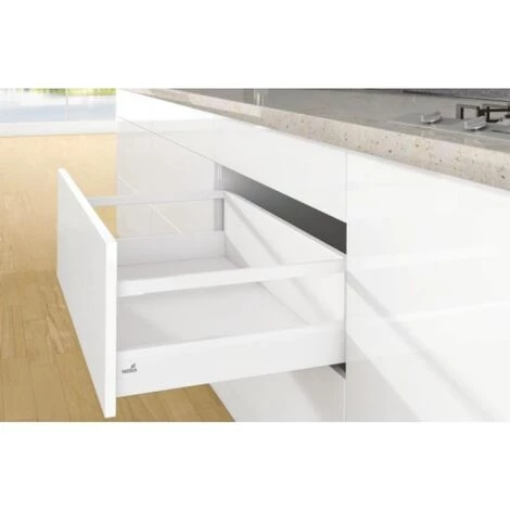 kit complet tiroir arcitech à casseroles avec tringles profil h94mm paroi arrière h218mm coloris blanc longueur 500mm