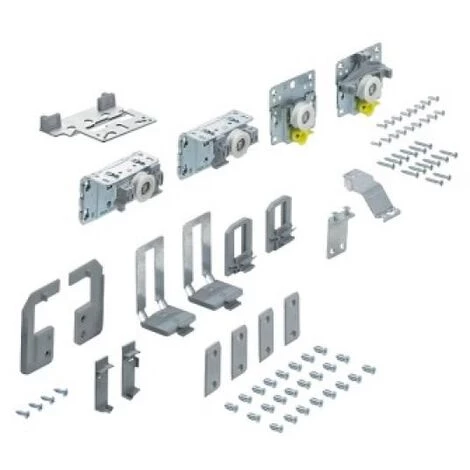 Description Garniture à combiner avec le kit de profilés TopLine L. Le kit est pour des armoires de 2 ou3 portes, le sens des portes est en fonction de la porte avant.Kit comprenant:-Pièces de guidage pour le profil bas,-Pièces de coulissage pour le profil haut,-Accessoires de fixations.