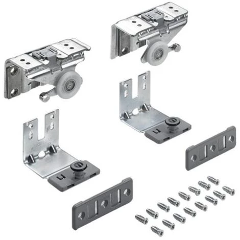 Description Kit de garnitures pour portes d’épaisseur 19 ou 22 mm.Porte avant à gauche ou à droite.Composition du kit :-Garniture porte avant (2 pièces de coulissage haut, 2 pièces de guidage bas, accessoires de fixation), -Garniture porte arrière (2 pièces de coulissage haut, 2 pièces de guidage bas, 2 aides de finition), -Kit d’accessoires pour ouverture superposée (2 blocs support et 2 butées de fin de coursepour le profilé de coulissage, 2 butées de fin de coursepour le profilé de guidage, accessoires de fixation).