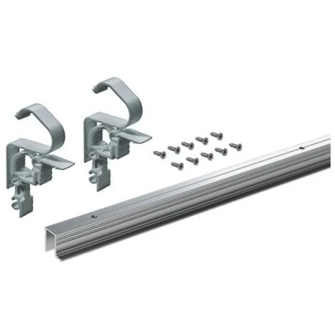 Description En aluminium.Kit composé de :-Un profil de coulissage haut.-Pinces de montage.