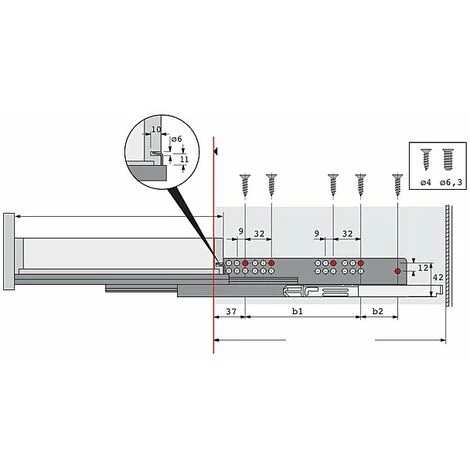 Paire de coulisses quadro V6+ 50 kg SILENT SYSTEM longueur 600 mm tiroir bois, En 600 mm, réf. 9136008