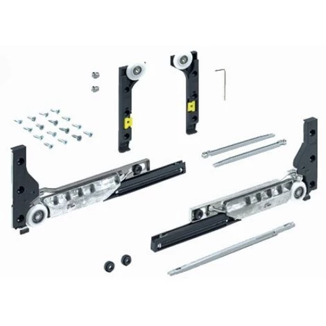 set de ferrures de coulissage et guidage avec amortissement de la fermeture et de l’ouverture – slideline m