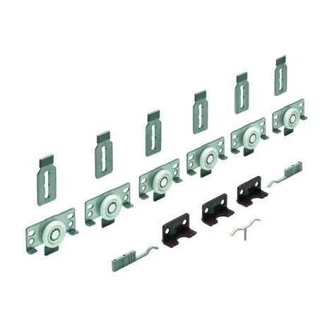 – Kit 2 portes comprenant : 4 galets, 4 guides supérieurs, butées de portes, 2 pièces d’écartements