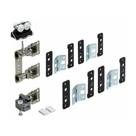 La garniture complète pour 1 porte à 2 vantaux comprend :