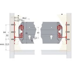 Casserolier Arcitech HETTICH – P.550 H.282/126mm – Blanc Sans Coulisse Avec Tringle – 9149436