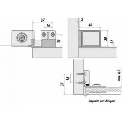 Charnière De Porte En Verre ET150 HETTICH – Nickel Mat – Haut Et Bas – 20870