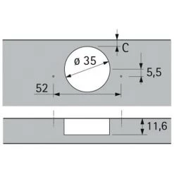 Charnière Intermat 9935 – Base : 18 Mm – Montage : En Applique – HETTICH – Entraxe : 52 Mm