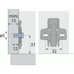HETTICH Embase Cruciforme à Visser Avec Vis De Fixation Direct 8099 D1,5 HV DBS Boite De 10