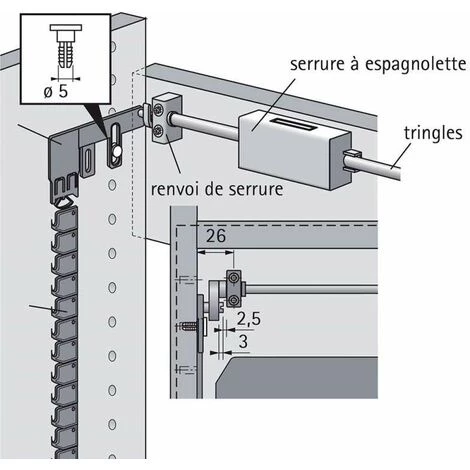 - Mécanisme de sécurité condamnant l’ensemble des tiroirs fonctionnant avec serrure espagnolette 3 points à cylindre